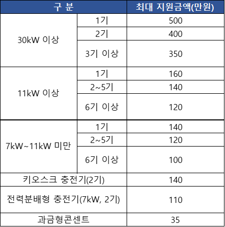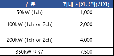 충전기 1기당 설치비용의 50% 이내에서 보조금 지원