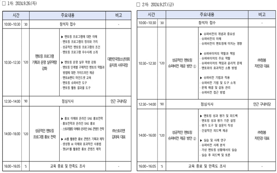 오늘 포스팅에서는 멘토링 교육과정의 교육개요, 교육일정, 신청방법에 대해 알아보겠습니다.