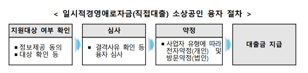 공단 심사를 통해 융자 대상자를 결정한 후, 직접 대출을 지원합니다. 주요 절차는 다음과 같습니다.