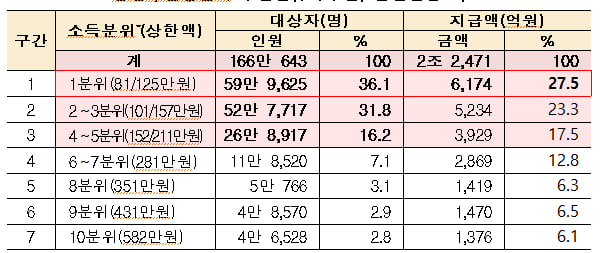 총 166만 643명에게 2조 2,471억 원을 환급하며, 1인당 평균 135만 원의 혜택을 받는 것으로 나타났다.